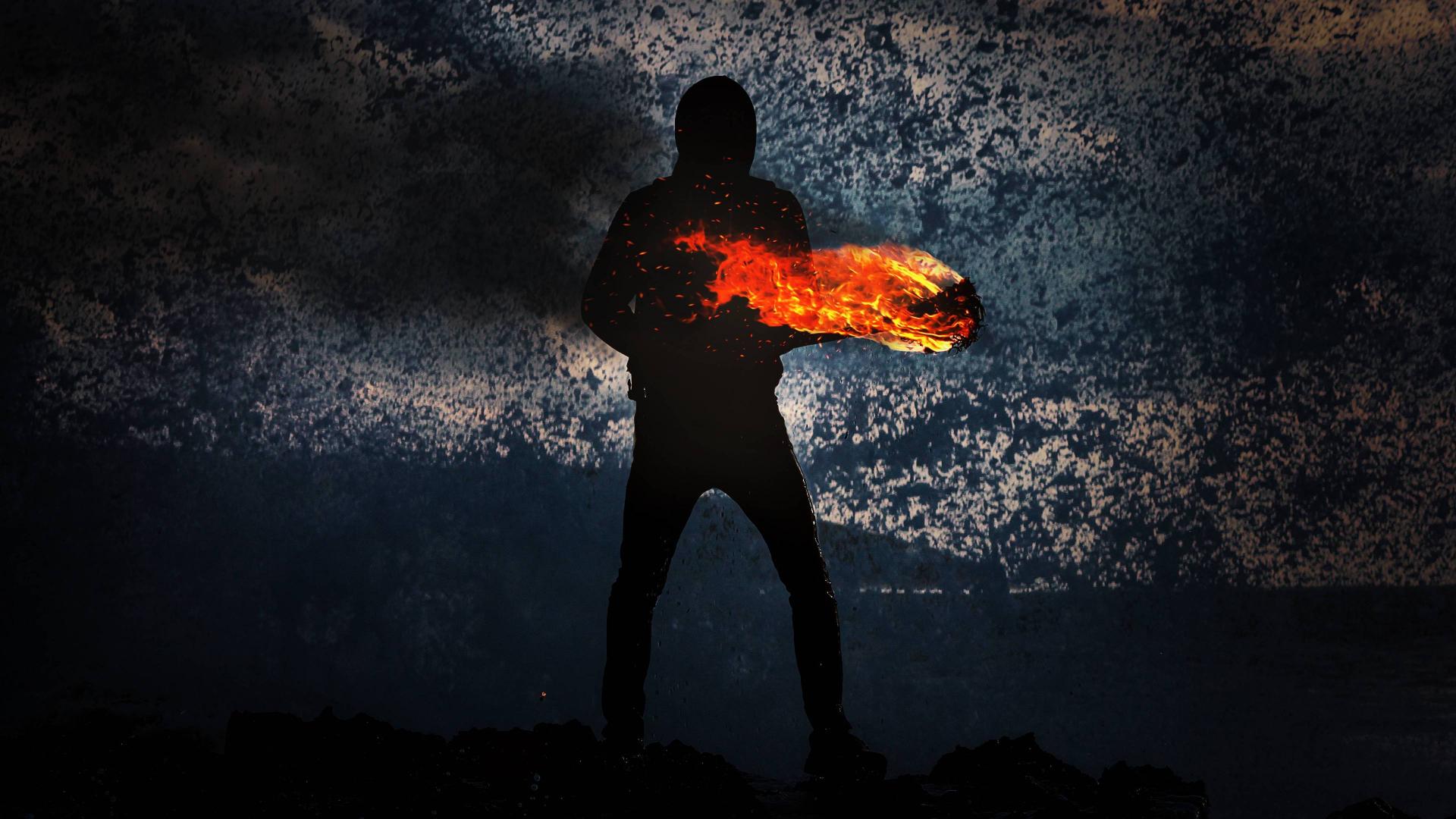 Homme tenant une flamme - Photographie 4K - Redimensionnement à 1920x1080