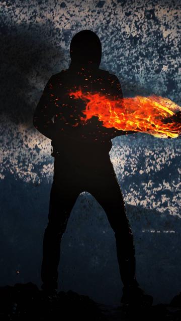 Homme tenant une flamme - Photographie 4K - Redimensionnement à 360x640