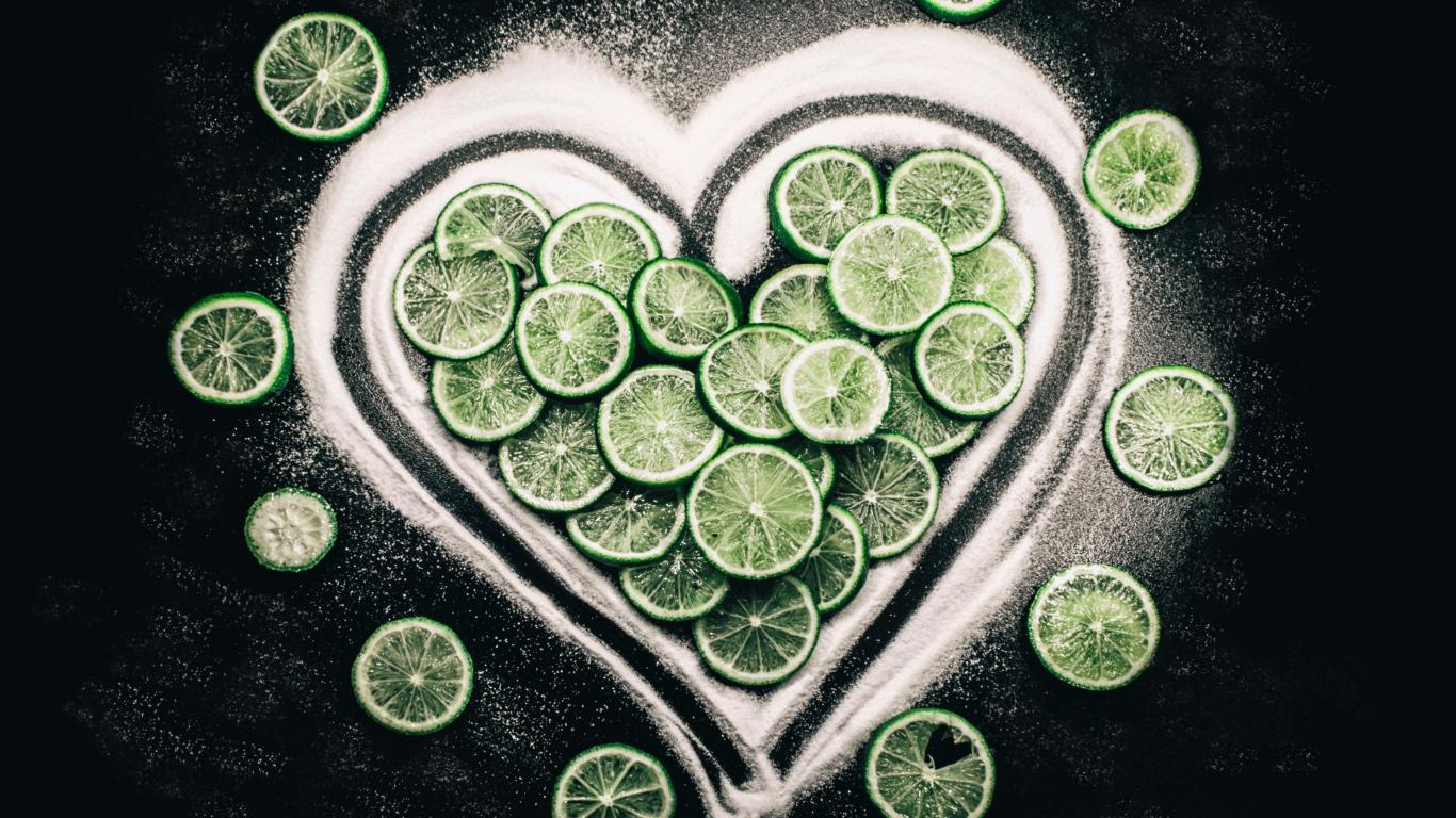 Coeur formé avec des citrons et sucre - Redimensionnement à 1366x768
