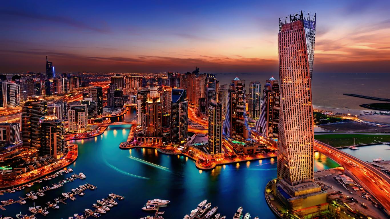 Dubaï de nuit - vue aerienne - Redimensionnement à 1366x768