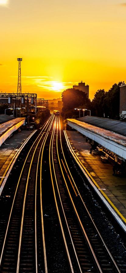 Chemins de fer - train - coucher de soleil - Redimensionnement à 414x896